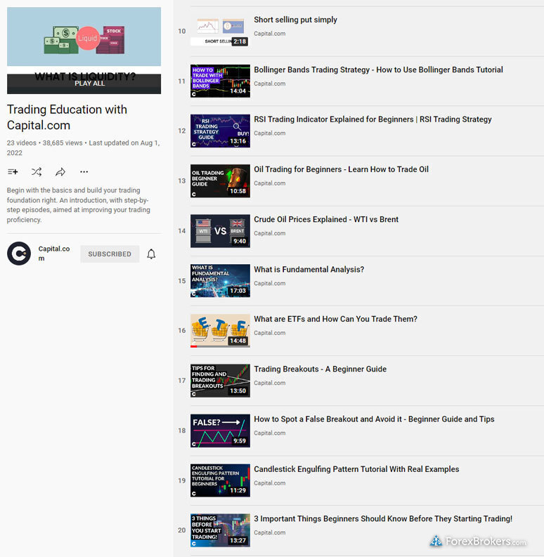 For beginner traders comparing eToro and Capital.com, both brokers deliver plenty of learning material. Each offers at least 10 beginner-friendly trading videos, plus 10 or more advanced videos for when you’re ready to level up. eToro adds live learning on top of that with online educational webinars held monthly, while Capital.com does not currently run monthly client webinars. Both platforms cover key forex and CFD topics to help you grasp essentials like order types, charts, and risk management.