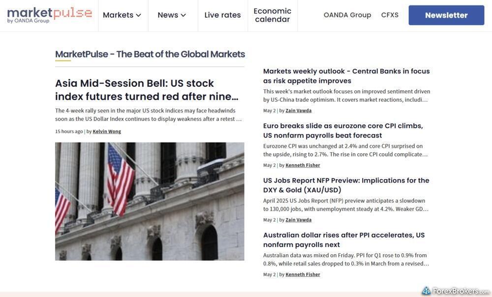 Comparing FXCM vs OANDA for market research: both brokers deliver daily market commentary, an economic calendar, and forex news from top-tier sources like Bloomberg, Reuters, and Dow Jones. Each also includes a sentiment tool showing long/short positioning. In independent ratings, OANDA earns 5 stars for Research and ranks #4 out of 63 brokers with ForexBrokers.com, while FXCM holds 4.5 stars and ranks #11.