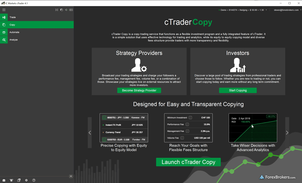 - Offers MetaTrader and cTrader for algo and copy trading.