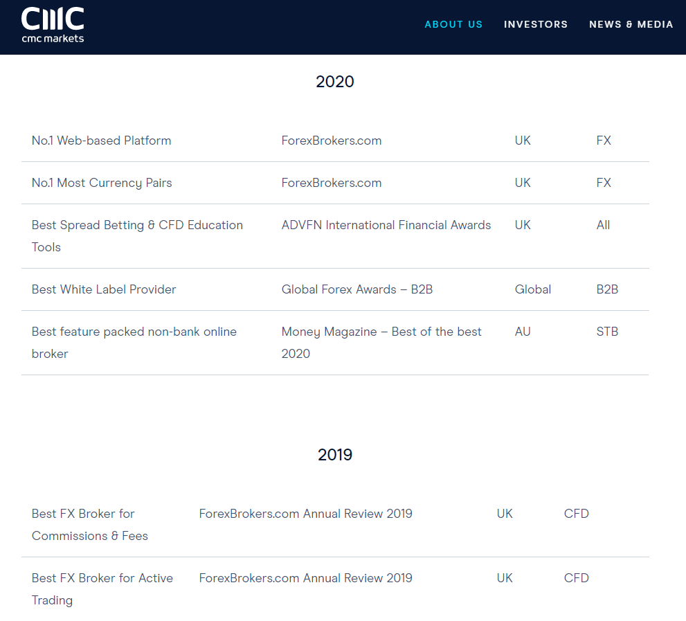 - CMC Markets - Awards